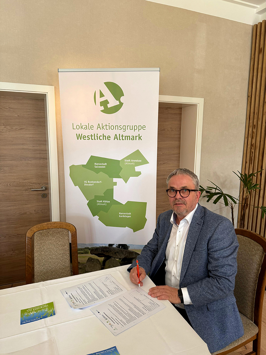 Der Vertrag ist unterschrieben. Vier LEADER-Gruppen aus der Altmark, dem Elb-Havel-Winkel und dem Jerichower Land kooperieren für die Durchführung des geplanten Lichtblütenfestivals im Herbst 2026. „Eine ganze Region hat sich für dieses einmalige Kulturfestival zusammengeschlossen“, sagt Michael Ziche, Vorsitzender der Lokalen Aktionsgruppe (LAG) „Westliche Altmark“. Zusammen mit den LAGn „Altmark Mitte“, „Altmark-Elbe-Havel“ und „Zwischen Elbe und Fiener Bruch“ soll das beliebte Lichtfest mit LEADER-Mitteln aus Fonds der Europäischen Union als Kooperationsprojekt finanziell unterstützt werden.
